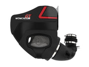 This 6” tall 360-degree radial flow air filter features a 4-1/2” round flange and our oil-free Pro DRY S media with three layers of synthetic media for maximum convenience. Its progressive layering provides great filtration efficiency and dust holding capacity, while not requiring the use of oils. This media is best suited for street and light off-road use. The smooth one-piece sealed housing, constructed of heat-resistant XLPE (cross-linked polyethylene) polymer, features our patent-pending filter-to-housing interface. A large, clear sight window allows for hassle-free filter inspection, without having to disassemble your system. This system features a high quality, computer-designed, dyno-tuned intake tube to achieve maximum power gains while maintaining a perfect fit. Its XLPE material is heat-soak resistant and extremely durable. A durable aluminum heat-shield panel is designed to keep the hot engine air away from the intake housing. This intake is designed to use factory mounting locations, minimizing the use of unnecessary hardware, ensuring a perfect fit every time. Its revolutionary design, featuring our patent pending filter-to-housing interface uses half the number of parts of a traditional cold air intake system. Stainless-steel worm clamps are included for strength, and a premium bellows coupling allows for ample flexibility. Momentum GT intakes are designed with fewer parts for a fast and easy installation.