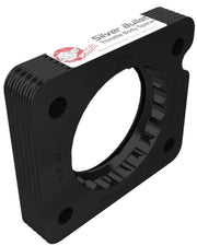 Silver Bullet throttle body spacers create turbulence in the air flow at the point just prior entry into the engine increasing horsepower, torque and improving throttle response and fuel efficiency. Silver Bullet throttle body spacers are constructed out of durable T-6061 billet aluminum and using a unique serrated/helix entry to create turbulence at the manifold while eliminating the annoying whistle found in other helix only throttle spacers.