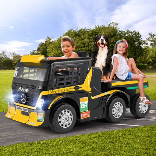 View full details12V10AH Battery Powered Ride-On Truck with Swing Trailer and MP3 Player - 6 Wheels RC Toy for Kids