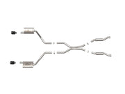 This cat-back exhaust system is constructed of 2-1/2 IN mandrel-bent 304 stainless steel tubing for maximum strength and durability. Finishing off this exhaust system are dual 4-1/2 IN diameter black 304 stainless steel clamp-on exhaust tips. The tips features a laser etched aFe POWER logo for a unique style. This system features high-flow 409 stainless steel polished mufflers, producing an aggressive sound. Muffler finish may vary. This system produces a deep sound unleashing all available horsepower and torque. Designed to equalize and evenly distribute exhaust pulses reducing drone, improving sound. Utilizing factory style flanges and hangers this system is a direct bolt-on system, which requires no cutting or modifications for a hassle-free installation. A mitered merge x-pipe is used to balance and evenly distribute exhaust pulses traveling through the exhaust system, minimizing exhaust drone and maximizing scavenging. State-of-the-art computer-aided design technology is utilized for precise vehicle fitment. 100% MIG-Welded for race-proven strength and durability.