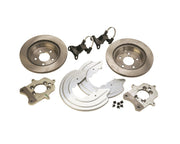 These Mustang GT rear brake bracket kits allow for the installation of Cobra, Mach 1, or Special Edition rear calipers, improving the braking of your Mustang GT. These kits include production rotors, caliper mounting brackets, moan braces, dust shields, and dust shield boots.