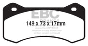 EBC Yellowstuff is an aramid fibre based brake compound with high brake effect form cold and is possibly one of the first ever compounds that can be used for STREET AND TRACK DRIVING. These pads do not require warm up but do get even stronger under the heat of hard driving. These are not a low dust pad and if your desire is for a low dust premium street use pad, you should consider EBC Redstuff.When considering full race use, Yellowstuff has been a strong favourite, having been used for two years in the Swedish Camaro Cup and at numerous other race events where a stock caliper system is fitted.It is also the choice of 90-percent of the Mazda MX5 Miata competitors in the UK race series and has an unblemished record as rotor friendly track pad for vehicles up to 2000 lbs weight or 200 BHP.In the USA the SCCA and NASA drivershave been testing Yellowstuff with feedback and good reports POURING in from a 543 test driver major market proving event with these groups. Read that figure again 543 test drivers.There is no guesswork here.