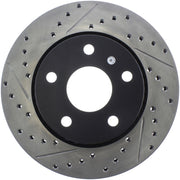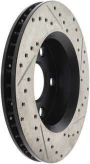StopTech Drilled Sport Rotors are 1-piece direct replacement brake discs for factory brake systems and stock calipers that look great behind your wheels – and offer significantly improved braking performance. The unique cross-drilling aids with heat and brake dust dispersal; prevents glazing of the pads; adds bite and improves wet and dry braking performance. Built to last; the black e-coating provides protection from corrosion and the high carbon metallurgy (in most applications) offers quieter operation; better crack resistance and increased performance.