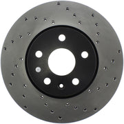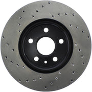 StopTech Drilled Sport Rotors are 1-piece direct replacement brake discs for factory brake systems and stock calipers that look great behind your wheels – and offer significantly improved braking performance. The unique cross-drilling aids with heat and brake dust dispersal; prevents glazing of the pads; adds bite and improves wet and dry braking performance. Built to last; the black e-coating provides protection from corrosion and the high carbon metallurgy (in most applications) offers quieter operation; better crack resistance and increased performance.