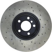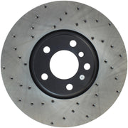 StopTech Drilled Sport Rotors are 1-piece direct replacement brake discs for factory brake systems and stock calipers that look great behind your wheels – and offer significantly improved braking performance. The unique cross-drilling aids with heat and brake dust dispersal; prevents glazing of the pads; adds bite and improves wet and dry braking performance. Built to last; the black e-coating provides protection from corrosion and the high carbon metallurgy (in most applications) offers quieter operation; better crack resistance and increased performance.
