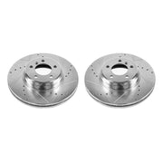 Power Stop drilled and slotted rotors provide a bolt-on upgrade for improved brake cooling and performance. Precision cross-drilled for maximum cooling and maximum performance during extreme conditions; rounded slots sweep away gasses, dust, and moisture to keep a clean friction contact patch on the rotor surface. Silver zinc dichromate plating resists rust and corrosion. With a direct OE fit, there are no special modifications needed.