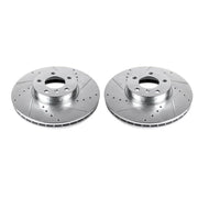 Power Stop drilled and slotted rotors provide a bolt-on upgrade for improved brake cooling and performance. Precision cross-drilled for maximum cooling and maximum performance during extreme conditions; rounded slots sweep away gasses, dust, and moisture to keep a clean friction contact patch on the rotor surface. Silver zinc dichromate plating resists rust and corrosion. With a direct OE fit, there are no special modifications needed.