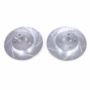 Power Stop drilled and slotted rotors provide a bolt-on upgrade for improved brake cooling and performance. Precision cross-drilled for maximum cooling and maximum performance during extreme conditions; rounded slots sweep away gasses, dust, and moisture to keep a clean friction contact patch on the rotor surface. Silver zinc dichromate plating resists rust and corrosion. With a direct OE fit, there are no special modifications needed.