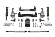 Fabtech's new 4'' F150 system utilizes their proven heavy duty construction and design features found in our 6'' systems but with less lift and at a much lower price. This 4'' Systems allows use of 35'' tall tires and features high arched lower control arm crossmembers constructed of 1/4 “ thick steel for maximum strength. The Fabtech ductile iron steering knuckles retain the stock track width keeping the tires under the fender for a clean appearance. Rear lift is accomplished with a block and u bolt configuration. The Performance System features Dirt Logic Stainless Steel 2.5 Coilover front shocks and Dirt Logic Stainless Steel 2.25 rear shocks for aggressive offroad capabilities with a smooth highway ride.