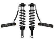 ICON Vehicle Dynamics V.S. 2.5 Series remote reservoir front coilover shocks with CDEV are an incredible upgrade for the front end of the 2022-2025 Toyota Tundra and 2023-2025 Toyota Sequoia. These adjustable coilovers allow up to 1.25-3.5” of lift height adjustability on Tundra or 3-4.5" of front lift on Sequoia, allowing the use of larger, more aggressive wheel and tire combinations. ICON’s Vehicle-specific shock length and valving along with the larger 2.5” shock body and increased piston area over stock components yield the maximum travel possible along with superior ride quality and suspension performance both on- and off-road. Reservoirs greatly increase shock oil volume and heat dissipation surface area to resist overheating and cavitation under hard use, which can lead to damper fade. The ICON CDE Valve upgrade is included for those desiring an easy way to tune the ride electronically from inside the vehicle. Compression Damping Electronic Valve (CDEV) is an electronically controlled valve that meters the flow of oil to regulate the amount of damping force that is created by the shock when compressed. This infinitely variable valve can react in less than 40ms and has the ability to make extremely precise adjustments for varying terrain. CDEV’s hydraulic circuits are also custom tailored per application to create the highest resolution and dynamic range allowable for each specific vehicle. Powered by ICON Intelligent Control and proprietary ICON mobile app, the system uses information from the onboard G-force sensor and Gyroscope to perform calculations based on algorithms and user-defined settings to predict terrain and adjust shock settings via the CDEV accordingly. When paired with ICON 2.5 or 3.0 Series CDEV rear shocks vehicle control will be balanced front to rear, resulting in the best overall driving experience for your Toyota Tundra or Sequoia.