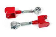 UMI’s Roto-Joint adjustable rear upper control arms are a bulletproof addition to your street or pro-touring car. UMI’s Roto-Joint upper control arms are suitable for street, strip or corner carving. The premium UMI built spherical joint drastically minimizes suspension deflection for a crisp handling setup, easy pinion angle tuning and less wheel hop. These on car adjustable upper control arms adjust easily while staying bolted to the car and are designed to handle virtually any application. The Roto-Joints combined with UMI’s in house designed and machined CrMo adjuster equal ultimate strength and performance. These heavy duty arms feature ¼” thick CNC laser cut mounting pads and a mix of TIG and MIG welding. These simple bolt in replacements install in 1-2 hours and are designed to work on all rear end housings. Launch harder and turn faster with UMI’s ultimate arms!