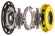T3R-F07 race, twin disc kit offers twice the number of disc surfaces for better wear, heat capacity and long life compared to single disc kits. These kits use a proprietary Positive Lift Floater System design, which results in quiet operation with no floater rattle and no posts to wear. ACT twin disc kits undergo an exclusive four-stage, heat-treating process on all diaphragms. The ACT twin disc features the ability to adjust for disc wear and provides equal disengagement for discs. ACT's 6-pad rigid race discs are made with high quality, ceramic friction materials. The chrome-moly hub is heat-treated for strength and durability. The lightweight, rigid design allows for quicker shifts and trouble-free service. All ACT twin disc kits include a CNC-machined and dynamically balanced flywheel to ensure trouble-free installation and operation. ACT twin disc kits include a pressure plate, two discs, a floater, flywheel and alignment tool. Some kits may include a pilot bearing and release bearing.