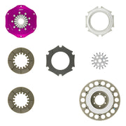 EXEDY carbon discs are able to perform through long durations of high rotational velocity due to our precise application of carbon. Carbon material also possesses a ''non-stick'' characteristic that eliminates disengagement problems. Available in single, twin and triple designs with both rigid or damper discs for a full range of power holding capacity. Carbon-D: The next generation of clutch systems by EXEDY is the Hyper Carbon-D carbon clutch system. Carbon-D was developed to achieve the ultimate goal of comfort and streetability by absorbing noise and vibration from drivetrain such as the differential, transmission and engine. The Carbon-D system is designed to protect the drivetrain by absorbing and dissipating ''shock torque'' by utilizing EXEDY Patented Technology. Superior engineering enables the Carbon-D clutch system to posses an ideal clutch engagement position, increased clamp loads and lower pedal effort, while the unique carbon fiber friction material allows comfortable half-engaged clutch operation and responsive gear changes. The EXEDY Hyper Carbon-D is available in both single and twin clutch configurations. Low Inertia Design: The weight of a carbon clutch disc is one third that of a metallic disc. Utilizing a high friction coefficient Hyper Carbon disc which allows for quicker shift response. Low inertia discs allow the transmission to synchronize in a shorter space of time eliminating time loss during shift changing while also reducing the applied load to the synchronizer. Easy to Handle: Semi-carbon clutches offer lightweight, high heat resistance and a stable friction coefficient. EXEDY carbon clutches are tuned so that at a lower temperature, engagement feeling is improved and conversely at high temperatures, engagement is ideal for spirited driving. All EXEDY Racing Hyper Carbon Series Clutch Kits carry SFI 1.2/1.5 Certification. Which means, when you buy these products you can be confident they are certified for use in competitive motorsports.