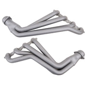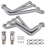 These 1-7/8 BBK Performance full length long tube exhaust headers offer unsurpassed quality and fitment using top quality materials and American craftsmanship. Every long tube exhaust header system is hand built with CNC mandrel bent tubing for unrestrictive exhaust flow and maximum performance, 3/8 in. laser cut header flanges, patented scavenging collector design and gasket less ball and socket connectors for easy installation. Every exhaust header has been designed specifically for your application to get the most horsepower and torque out of the engine. BBK long tube exhaust headers outperform the competition in quality value and performance. All headers are a direct fit bolt on replacement when used with the correct matching mid-pipes which are available with high flow catalytic converters. Our decades of exhaust design and experience make BBK Performance your number one choice for late model American car and truck performance exhaust.