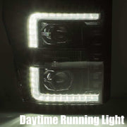 AlphaRex 11-16 Ford F-350 SD LUXX LED Proj Headlights Plank Style Chrm w/Activ Light/Seq Signal/DRL
