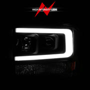 ANZO 99-04 Ford F250/F350/F450/Excursion (excl 99) Projector Headlights - w/ Light Bar Black Housing