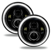 The Ultimate LED replacement headlight option for any vehicle with 7" Sealed Beam lamps. The rugged design is perfect for your Jeep Wrangler, Off-Road Vehicle, Buggies, or Classic Car/ Truck. Installation is very easy with the included H4 and H13 Plug and Play connectors. Each set comes in full color retail-ready packaging and a 2-Year free Replacement Warranty. You can even choose optional colored Halos for even more customization! Improvements in brightness and reliability by adding a constant current LED driver to the main circuit board inside of the lamp to control the halos. NEW! No need for Anti-Flicker Wiring Adapters- The new SMART Integrated Can-Bus system automatically adjusts- preventing flicker issues. Increased Reliability- By conditioning the power going into the LEDs this prevents degradation which can shorten the overall lifespan of the product. Wider Input Voltage Range- The new SMD Halos can operate on a very wide voltage range from 12V-24V so that voltage spike can not damage the LEDs. Brighter LED Halos- by moving the heat load of the resistors off the PCB we are able to increase the number of LEDs on the circuit board without thermal issues. LED chips upgraded from a Cree LED to a Phillips Luxeon ZES chip. They deliver a very high efficacy 130LM/W ratio while having lower thermal output.