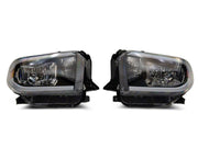 Improve the appearance and nighttime driving visibility of your Toyota Tundra just by replacing your old weathered, worn out, and yellowing factory headlights with a brand new pair of Axial Headlights that feature black housings and clear lenses. With an impressive LED Daytime Running Light (DRL) design, these Headlights will give your Tundra a whole new look. Manufactured from OEM grade materials, these Headlights are assembled to precise standards for long-lasting quality. These Headlights feature durable, black ABS plastic housings with multi-faceted chromed reflectors, clear polycarbonate lenses, and modern LED lighting. Each housing is weather-sealed to prevent dirt and moisture from harming the state of the art electronics found inside. These Headlights will not only bring a fresh new look to your truck, but they also meet or exceed the strict guidelines set forth by the U.S. Department of Transportation (DOT) and the Society of Automotive Engineers (SAE), making them legal for street use. These Headlights were designed to be a direct plug and play replacement for your truck's original factory housings. The DRL light bar portion of the headlight will require splicing into your Tundra's running lights for operation. Please be sure to have your headlights properly aimed/aligned before driving at night.