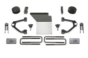 This system offers a mild lift height with easy installation for clearance of 33" tall tires on K1500's w/ factory Magnetic Ride Control suspension. Lift is accomplished by utilizing the factory front Coilover shocks with steel spacer system that helps retain the stock ride of the front suspension. The stock upper control arms are replaced with thick wall DOM tubular arms that feature heavy duty extended range ball joints. These ball joints provide additional strength to the vehicles suspension compared to the factory. The front differential is relocated to keep CV angles proper with the new lift height while a 1/4" thick steel skid plate provides protection against offroad obstacles. Rear lift is accomplished with 1 1/2" rear lift block and u-bolts to help level the stance of the vehicles. - Value priced system with Fabtech quality Increased ground clearance Extended range upper ball joints provide a smooth quiet ride Increased fender clearance compared to a Leveling Kit for 33" tall tires Suspension can be restored to stock Easy installation.
