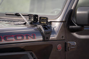 These light mount brackets install direct to factory mounting locations on the cowl of your Jeep maintaining a low-profile position. Up to two 3-inch LED pod lights can be installed on each side, providing additional lighting on the trail in low-light conditions. The brackets are constructed with 3mm steel, and finished in a micro-texture black powder coat.
