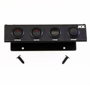 These NX switch panels offer a clean and attractive switching solution for nitrous systems as well as many other electrical devices. These switch panels include a variety of interchangeable laser engraved switch nameplates allowing you to change any switch to any location.