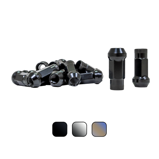 Replace your old rusty and crusty lug nuts with our set of open ended racing style lug nuts. These lug nuts are a standard M12 x 1.25mm thread pitc...