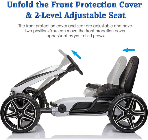 LUCKYERMORE Kids Pedal Go Kart Benz Racer Quad with Adjustable Seat for Outdoor Fun