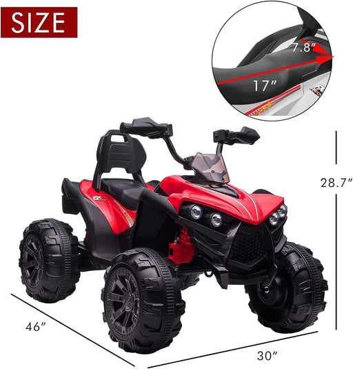 12V Electric Kids Ride-On Off-Road ATV Quad Bike with 2 Speeds - Red