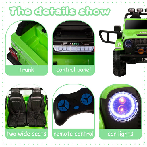 12V Electric Ride-On Jeep Truck for Kids 2-Seater with 3 Speeds Green