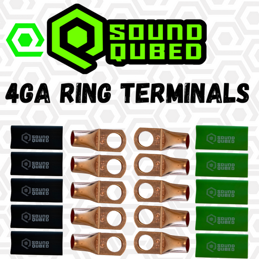 This listing is for 10 pack of Ring Terminals. This includes 10 pieces of 4 Gauge Soundqubed Ring Terminals with heat shrink, 5 pack of black and a...