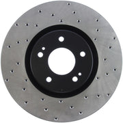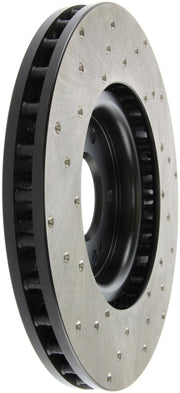 Les disques de frein sport percés StopTech sont des disques de frein monobloc de remplacement direct pour les systèmes de freinage d'usine et les étriers de série qui ont fière allure derrière vos roues et offrent des performances de freinage considérablement améliorées. Le perçage transversal unique facilite la dispersion de la chaleur et de la poussière de frein, empêche le glaçage des plaquettes, ajoute du mordant et améliore les performances de freinage sur sol sec et humide. Conçu pour durer, le revêtement électronique noir offre une protection contre la corrosion et la métallurgie à haute teneur en carbone (dans la plupart des applications) offre un fonctionnement plus silencieux, une meilleure résistance aux fissures et des performances accrues.