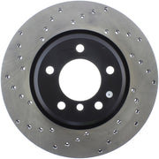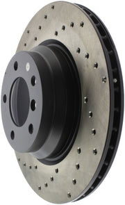 Les disques de frein sport percés StopTech sont des disques de frein monobloc de remplacement direct pour les systèmes de freinage d'usine et les étriers de série qui ont fière allure derrière vos roues et offrent des performances de freinage considérablement améliorées. Le perçage transversal unique facilite la dispersion de la chaleur et de la poussière de frein, empêche le glaçage des plaquettes, ajoute du mordant et améliore les performances de freinage sur sol sec et humide. Conçu pour durer, le revêtement électronique noir offre une protection contre la corrosion et la métallurgie à haute teneur en carbone (dans la plupart des applications) offre un fonctionnement plus silencieux, une meilleure résistance aux fissures et des performances accrues.