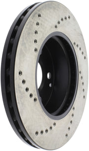 Les disques de frein sport percés StopTech sont des disques de frein monobloc de remplacement direct pour les systèmes de freinage d'usine et les étriers de série qui ont fière allure derrière vos roues et offrent des performances de freinage considérablement améliorées. Le perçage transversal unique facilite la dispersion de la chaleur et de la poussière de frein, empêche le glaçage des plaquettes, ajoute du mordant et améliore les performances de freinage sur sol sec et humide. Conçu pour durer, le revêtement électronique noir offre une protection contre la corrosion et la métallurgie à haute teneur en carbone (dans la plupart des applications) offre un fonctionnement plus silencieux, une meilleure résistance aux fissures et des performances accrues.
