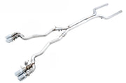 L'échappement SwitchPath™ Cat Back est doté de deux tubes en acier inoxydable T304L de 3 pouces, cintrés au mandrin CNC, de 0,065 pouce de diamètre, des tuyaux de descente aux sorties d'échappement, avec un tube en X conçu avec précision entre les deux. Équipé de sections arrière à valves, le SwitchPath™ Cat Back conserve tout le comportement des valves de la M5 lors du changement de mode de conduite et/ou de l'utilisation du bouton d'échappement situé sur la console. Les tuyaux intermédiaires AWE Performance remplacent la section médiane d'usine par un tuyau en X en acier inoxydable de 3 pouces et sont inclus dans la configuration Cat Back SwitchPath™. Toutes les options d'embouts sont de 4 pouces, à coupe oblique, et incluent le logo AWE et une double paroi pour assurer une finition miroir même en cas d'utilisation intensive. Tous les embouts sont réglables individuellement, ce qui permet de régler la profondeur du pare-chocs selon les goûts personnels.