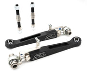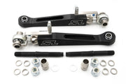 Les bras de suspension inférieurs avant (FLCA) de la série S550 de Ford Shelby GT500 Mustang offrent un réglage du centre de roulis, du carrossage et de la largeur de voie et permettent une articulation complète avec l'angle de rotule approprié. Le bras principal est fendu pour permettre l'utilisation de boulons de pincement, et nos pinces rotatives sur le double ajusteur exclusif de SPL Parts verrouillent les réglages de carrossage et de largeur de voie. Fini les contre-écrous ! Il est révolu le temps où il fallait tâtonner avec plusieurs clés pour serrer les contre-écrous en place tout en essayant de maintenir vos roulements correctement orientés. Notre double ajusteur est usiné à partir de Chromoly 4130, percé au pistolet pour réduire le poids, puis nickelé sans électrolyse pour une résistance à la corrosion. Le matériel en titane anodisé bleu réduit encore plus le poids non suspendu des bras sans compromettre la résistance. Des entretoises en acier inoxydable sont fournies pour corriger le centre de roulis des véhicules abaissés. L'utilisation d'embouts de tige FK et de roulements sphériques à désalignement élevé élimine la flexion et la liaison trouvées dans les bras de commande OEM, tout en permettant une articulation fluide. Vendu par paire. Fabriqué aux États-Unis !