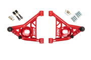 Les bras inférieurs F-Body de 2e génération d'UMI sont parfaits pour les passionnés de F-Body qui cherchent à améliorer les performances et l'apparence de leur suspension avant. Les 2651 sont dotés d'un déplacement de la rotule pour améliorer la sensation de direction et améliorer la stabilité à grande vitesse. Le godet à ressort robuste accepte les ressorts hélicoïdaux d'usine et de rechange ainsi que les unités de coilover hybrides populaires. Les plaques de renfort UMI découpées au laser ajoutent une belle apparence et une excellente résistance. Les bagues en polyuréthane de haute qualité et les butées de choc sont utilisées pour offrir une conduite nette et confortable. Les biellettes d'extrémité de barre stabilisatrice à double cisaillement d'UMI sont incluses et fonctionnent bien avec la barre stabilisatrice avant UMI P/N 4035 et également avec la plupart des barres stabilisatrices de type œillet de rechange. Disponible en revêtement en poudre rouge UMI ou noir brillant. 100 % conçu, fabriqué et couru avec fierté aux États-Unis.