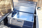 Dee Zee Combo Tanks - The convenience of a utility chest connected to a liquid transfer tank. Constructed of heavy duty .125 Brite-Tread aluminum. Radius curve design eliminates key weld pressure points. Aluminum is durable light weight and eliminates the worry of rust. Tanks feature stability baffles, 3/8 in. drainage plug. Tool box offers lockable storage with high quality stainless steel paddle handles and features gas shocks. Tanks are intended for private use (non-commercial). Not designed for use as an auxiliary fuel system. Not designed for use as an auxiliary fuel system. Does not meet title 49 of the United Stated Federal Registry governing transportation.