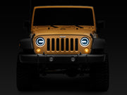 Phares à LED Raxiom 97-18 Jeep Wrangler TJ/JK 7 pouces avec halos - Boîtier noir (lentille transparente)