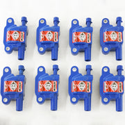 Bobine série GM LT - Voitures 85KV Série MALEVOLENT - Corvette C7 et C8 et Camaro Gen 6 - Ensemble de 8 - Corps bleu.