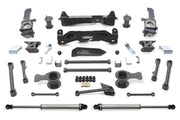 Le système FJ de Fabtech est doté de fusées de direction allongées fixées aux traverses de bras de commande inférieures d'une seule pièce pour une élévation complète de 6 pouces afin de dégager les pneus de 35 pouces. Les traverses inférieures avant sont dotées de cames d'alignement réglables ainsi que d'une plaque de protection différentielle en acier de 1/4 '' d'épaisseur intégrée. Le système de base conserve l'ensemble de jambe de force avant pour une conduite en douceur sur l'autoroute avec une facilité d'installation. Les systèmes de suspension arrière de base comprennent des bras de liaison supérieurs et inférieurs tubulaires, utilisant les ressorts hélicoïdaux arrière d'origine pour une conduite souple sur autoroute avec une excellente articulation tout-terrain. L'installation ne nécessite pas de déplacer la crémaillère et le pignon ou de démonter les ensembles de jambe de force avant. Les arbres de transmission avant et arrière d'origine sont conservés grâce à la géométrie de suspension précise de Fabtech. Comprend des amortisseurs arrière Dirt Logic en acier inoxydable de 2,25.