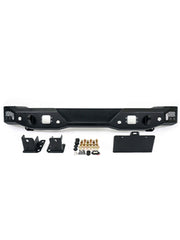Le pare-chocs arrière de la série Bronco MTO est compatible avec tous les niveaux de finition Bronco. Nous avons placé le support de plaque d'immatriculation sur le côté du pare-chocs, afin d'accueillir des roues jusqu'à 37 pouces et de garantir que le hayon s'ouvre librement. Le nouveau support de plaque d'immatriculation comprend des feux de plaque d'immatriculation. Deux lampes encastrées de 3 pouces peuvent être montées de chaque côté du pare-chocs. Il y a 2 supports de chape qui acceptent des manilles à anneau en D de 3/4 pouce qui offrent des options de récupération. Le pare-chocs de la série MTO comprend des trous de capteur pour conserver toutes les fonctionnalités des capteurs de secours d'usine.