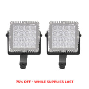 Support d'éclairage pour capot de pare-brise Jeep Wrangler JL, JLU et JT pour un cube de 6" X 6" Q4 Series LED, côté conducteur et passager. Les supports d'éclairage sont assortis d'une garantie à vie limitée sur les matériaux et la construction et d'une garantie de 5 ans sur la finition noire texturée.
