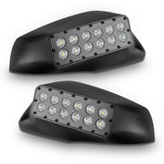 La barre lumineuse LED est une conception personnalisée qui comprend un total de 24 LED Cree puissantes. Cela donne au conducteur une visibilité accrue et un éclairage périphérique. Chaque unité a un angle de faisceau de 45 degrés pour optimiser la visibilité périphérique du conducteur pour rouler sur la piste ou dans le désert. Plusieurs dissipateurs thermiques en aluminium sont utilisés pour évacuer efficacement la chaleur des LED et sont conçus pour utiliser le flux d'air à travers le boîtier du rétroviseur pour augmenter le refroidissement similaire à un radiateur. Durabilité : Le matériau du boîtier est fabriqué à partir de polycarbonate robuste qui est 2 fois plus résistant que le boîtier ABS d'usine et se boulonne sur le véhicule à l'aide des supports d'usine pour une installation facile. Un ensemble de protections anti-roches anodisées protège les lentilles acryliques LED, qui abritent également l'optique de focalisation LED. Ces optiques efficaces concentrent la lumière pour une visibilité optimale depuis la position du siège conducteur. Conception : Notre objectif lors du développement de ce produit était de créer une barre lumineuse LED qui pourrait être parfaitement intégrée dans la conception du véhicule d'une manière qui semble être celle de l'usine. Les barres lumineuses fixées aux pare-chocs et aux barres de toit ont une mauvaise intégration et semblent être une réflexion après coup. Ces miroirs ont une fonction fonctionnelle et sont esthétiques, offrant le meilleur des deux mondes.