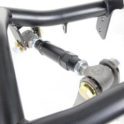 Bras à 4 bras boulonnés avec barres de réglage doubles pour carrosserie GM F 1970-1981. Comprend des joints en R, des barres, un berceau à boulonner, des supports d'essieu et du matériel. Revêtement en poudre noir. Revêtement en poudre noir. À utiliser avec des amortisseurs Shockwave ou Coil-Overs, vendus séparément.