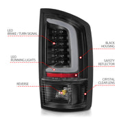 Feux arrière à LED ANZO 2002-2006 Dodge Ram 1500 avec barre lumineuse, boîtier noir, lentille transparente