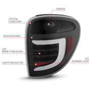 Feux arrière à LED ANZO 2004-2007 Dodge Grand Caravan avec barre lumineuse, boîtier noir, lentille transparente