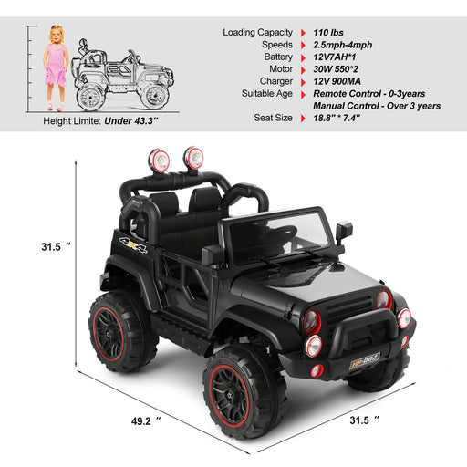 Afficher tous les détails12V Black Kids Ride-On Truck with MP3, LED Lights, Remote Control, and Cover