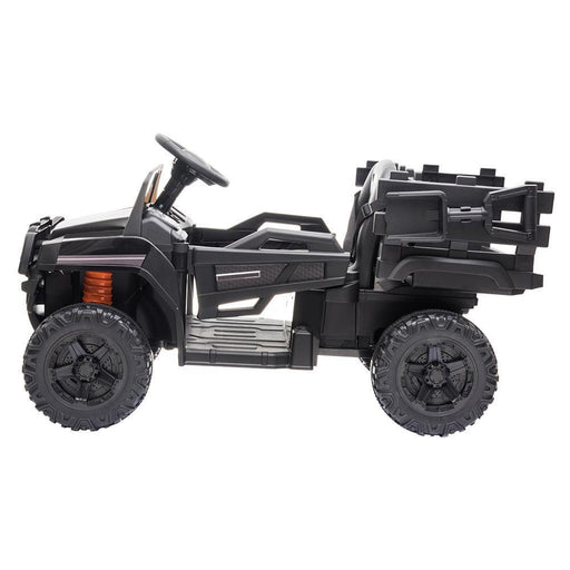 12V Electric Kids Ride On Car Truck with Music, Lights, and Fun Trailer - Black