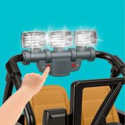 The ride-on features a realistic lightbar and pretend fog lights on the front bumper, giving it an off-road look. Your kids will love the pretend radio with real Jeep driving sounds, making them feel like they're driving a real car. The roomy rear storage area is perfect for storing all their toys and essentials for their adventures.