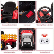 12V Battery Powered Electric Tractor with Trailer Ride-On Toy for Kids with Remote Control